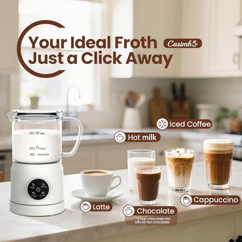 Casimhu 4-in-1 Milk Frother, Electric Milk Frother and Steamer with LED Touch Screen, Ceramic Lining Bottom, Milk Warmer 13.52oz for Lattes, Cappuccinos, and Macchiatos at Home, White