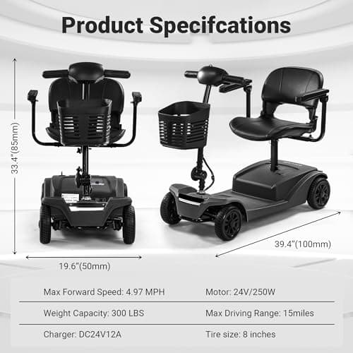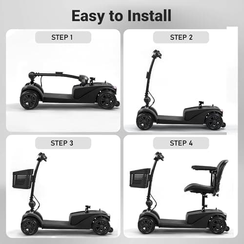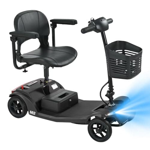 Mobility Scooter for Adults, Senior, 4 Wheels Electric Powered Chargeable Device for Travel, Lightweight Mobility Scooter with LED Headlights and Basket, Charger Included