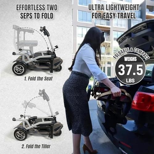 ATTO Folding Travel Powered Mobility Scooter by MovingLife, Full-Size Portable Electric Scooter, Lightweight Lithium Battery, Airline Approved