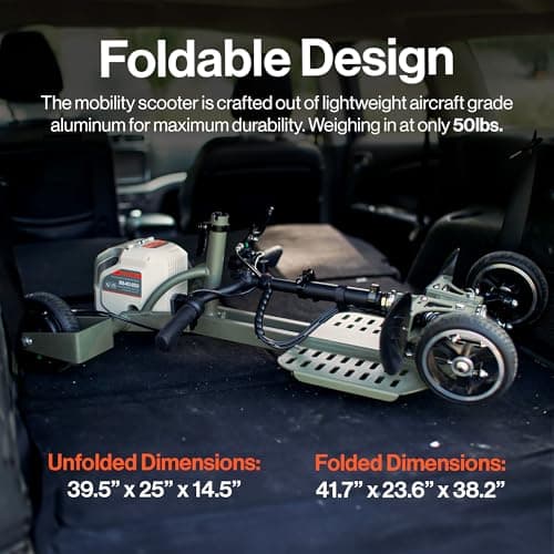 ![SuperHandy Passport Pro Mobility Scooter - Foldable Aluminum Frame, 4 Wheels, Includes 2 48V 2Ah Li-Ion Batteries & Charger, Supports up to 330 Lbs [Patent Pending] (Dark Green & Sand, 330 Lbs)](/essentials/_next/image?url=https%3A%2F%2Fm.media-amazon.com%2Fimages%2FI%2F41Sx51C9xIL._SL500_.jpg&w=3840&q=75)
