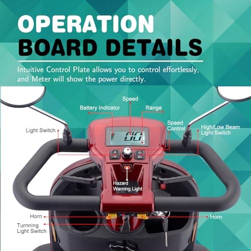 Heavy Duty Mobility Scooters for Seniors & Adults 500lbs Capacity - Electric Powered Mobility Cart - 1000W All Terrain Recreational Mobility Scooter for Travel