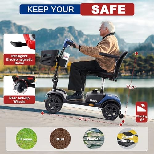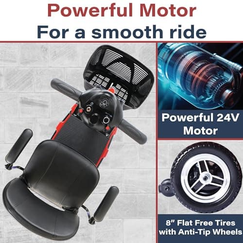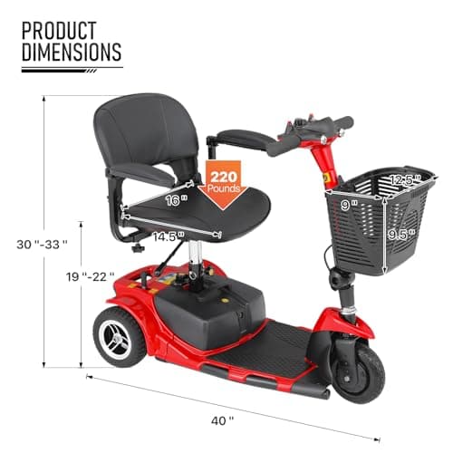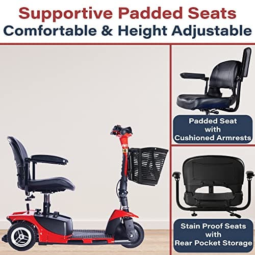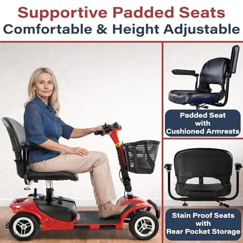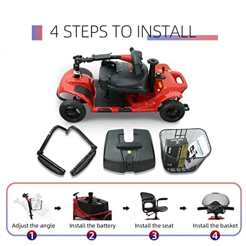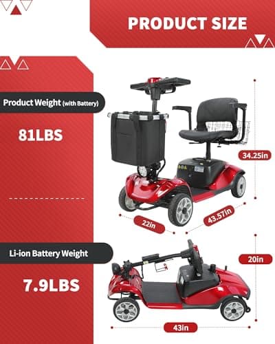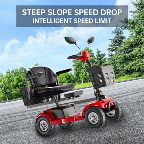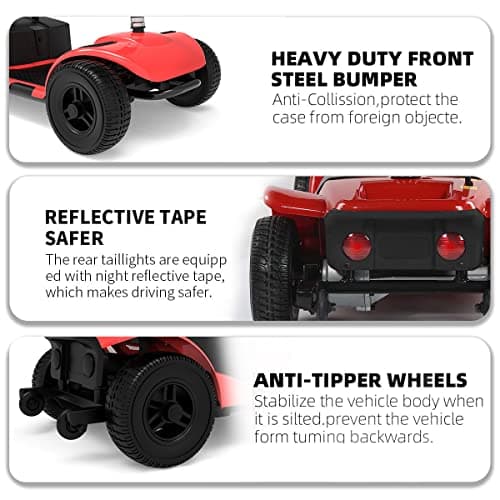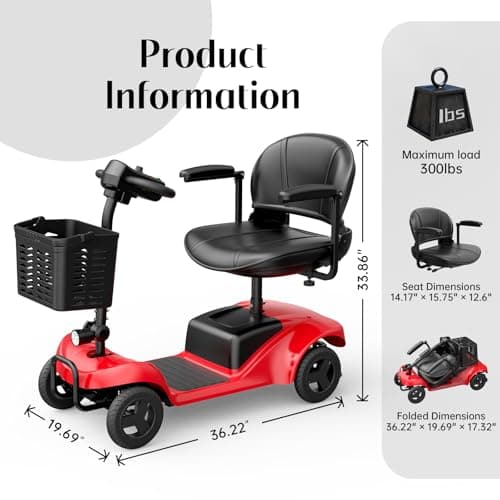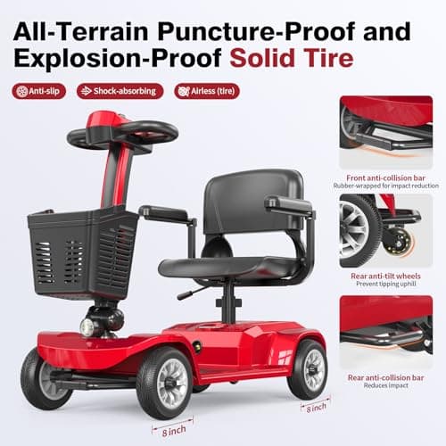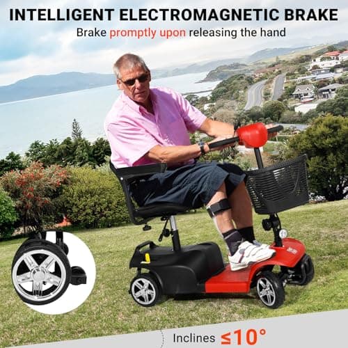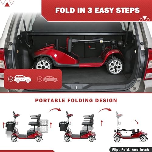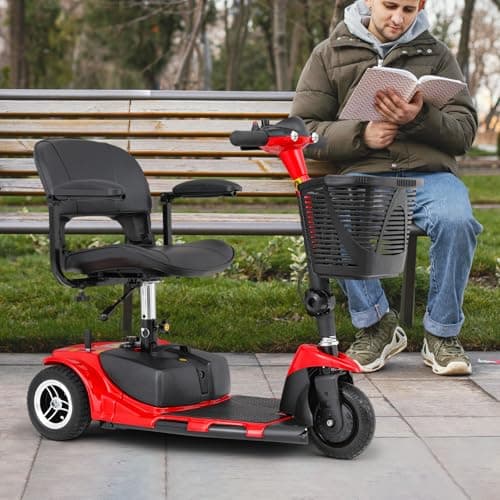 Wooken Mobility Scooter for Seniors, Adults, 4 Wheels Powered Mobility Scooter, 264 lbs All Terrain Foldable Powered Mobility Scooter,Compact Heavy Duty Mobility for Travel,12.1 Miles Range,Red
