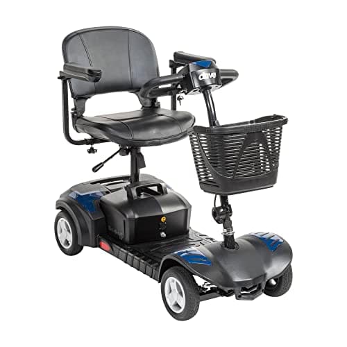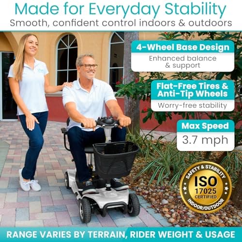 Vive 4 Wheel Mobility Scooter - Electric Powered Wheelchair Device - Compact Heavy Duty Mobile for Travel, Adults, Elderly - Long Range Power Extended Battery with Charger & Basket
