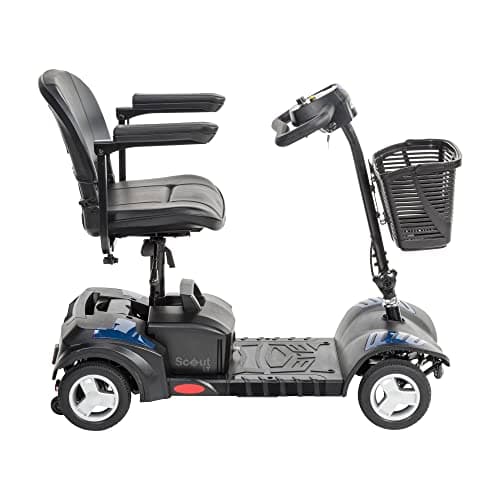 Drive Medical Spitfire Scout 4-Wheel Power Luxury Travel Scooter with Extended 15 Mile Range Battery, Red/Blue
