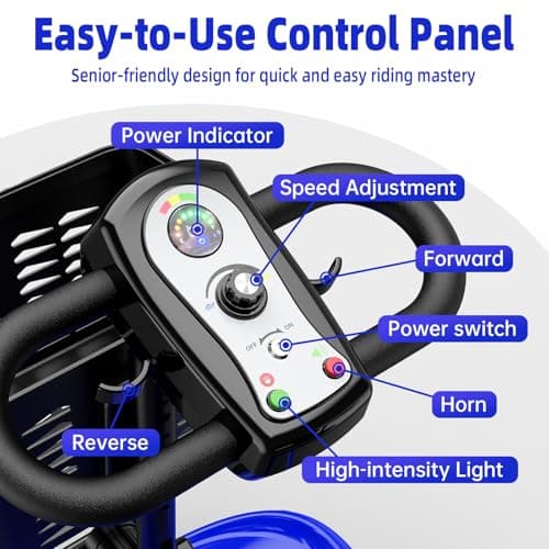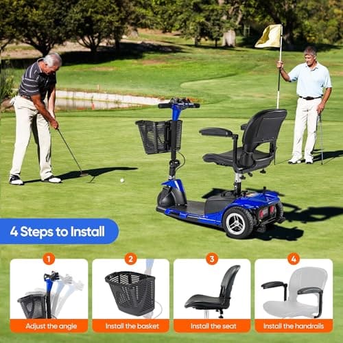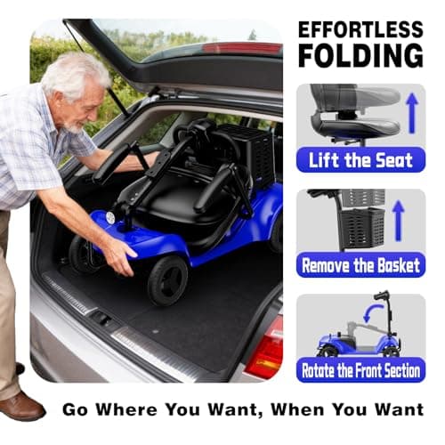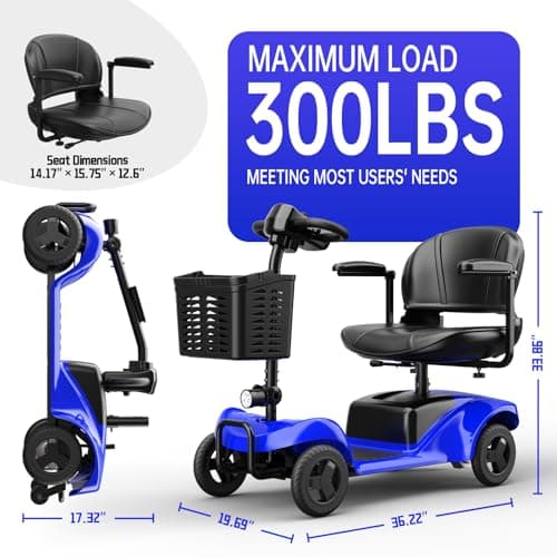Foldable 4-Wheel Mobility Scooter for Adults – Portable Motorized Scooter with 330 lbs Capacity, Detachable Battery, Dual Baskets, Cup & Phone Holder, Blue