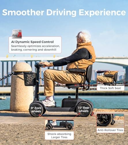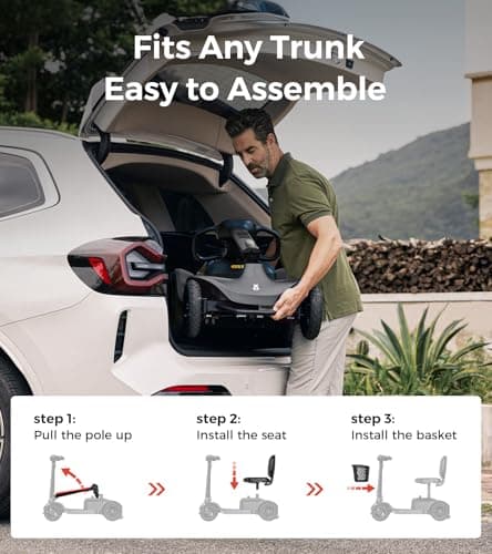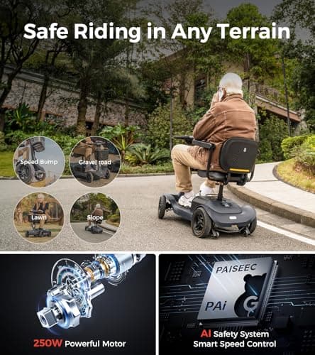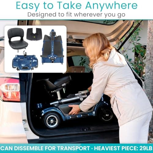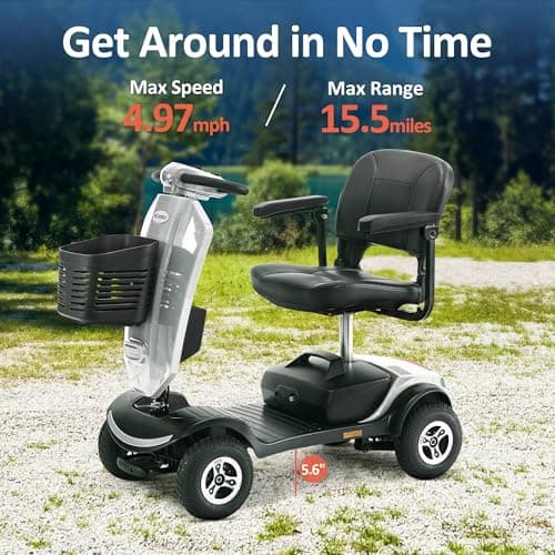 Rascal Venture 4-Wheel Portable Mobility Scooter for Travel, Easy Disassembly, Compact Design, 300 lb Capacity, Battery Included
