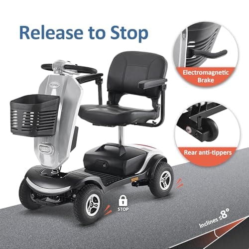 MCombo Power Mobility Scooter for Adults, 4 Wheel Mobility Scooter with Rotating Swivel Seat, 15 Miles, 4.97MPH, Headlight, Basket and Charger Included, MS315 (Silver)