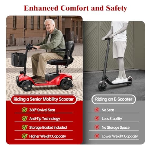 Mobility Scooter for Adults,4 Wheel Mobility Scooter,15 Miles Range,300LBS Capacity,Lightweight and Portable,with LED Headlights and Basket,Charger Included,Gifts Suitable for Elders,red