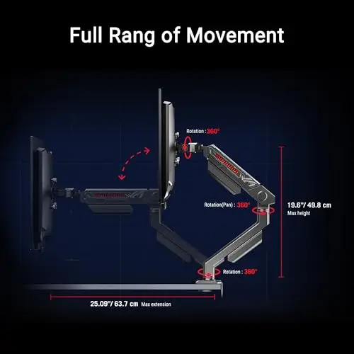 Gas Spring Monitor Arm 32 Inch,Adjustable Single Monitor Desk Mount with Swivel/Tilt/Rotation,Computer Monitors Stand Holder with Clamp/Grommet Mounting Base, VESA Mount Bracket