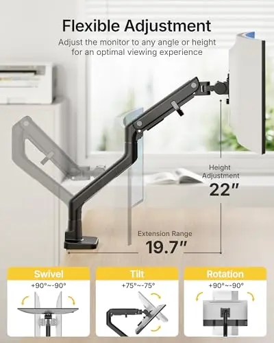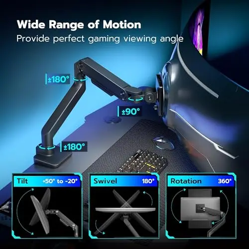 Gaming-setup monitor arm pages are useful when desk space, cleaner cable routing, and precise screen placement matter as much as basic monitor support. Gaming desks often combine larger displays, deeper keyboards, speakers, and accessories, so the arm needs to free surface space without making the screen feel unstable.