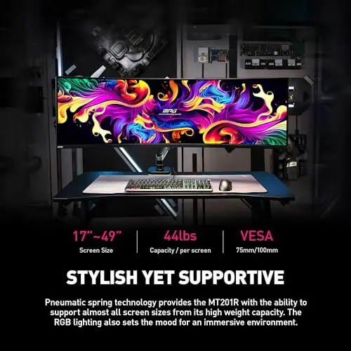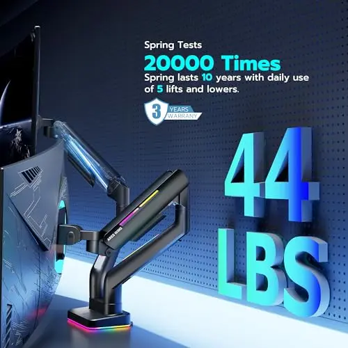 Ultrawide Monitor arm for 17-49'' Heavy Duty Screen up to 44lbs, Gas Spring Single Monitor Arm with RGB Light, Adjustable Gaming Computer Monitor Arm for Desk, Black