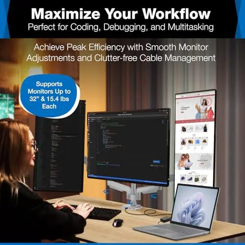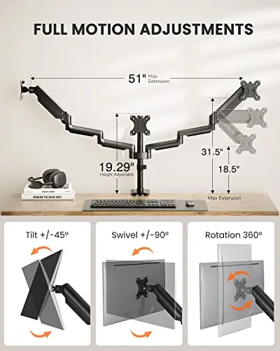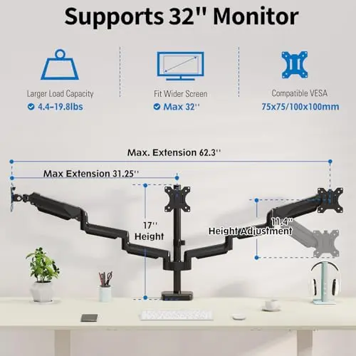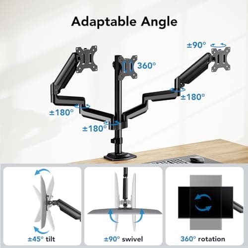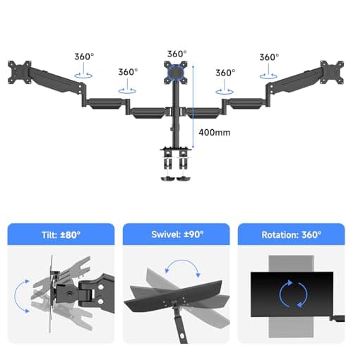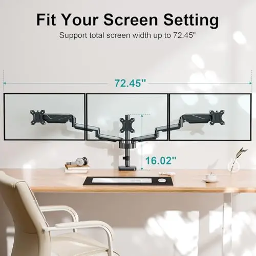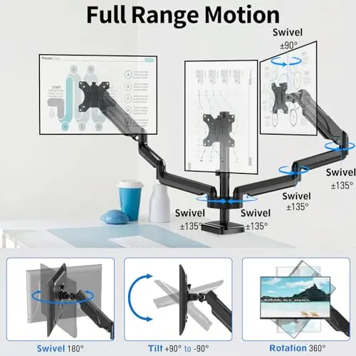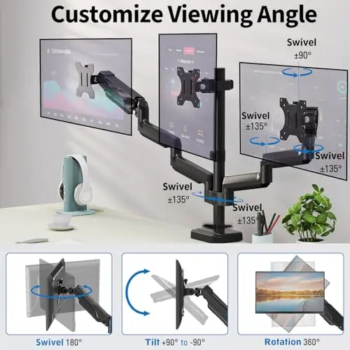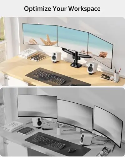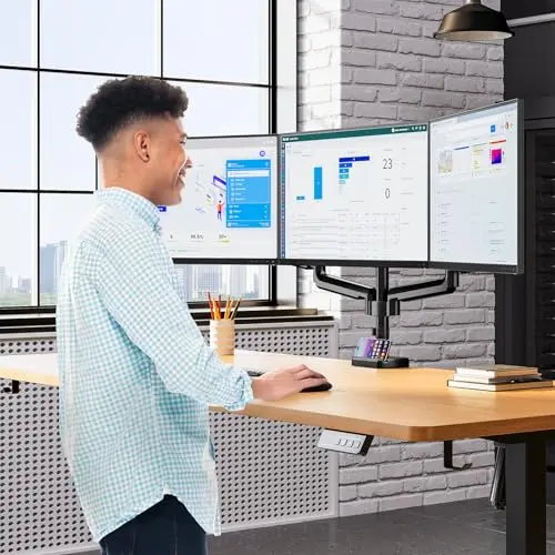 Triple-screen monitor arm pages are useful when your workspace needs three displays arranged side by side or in a mixed layout. These setups need more than just enough weight support. You also need desk width, reasonable crossbar geometry, and a base that stays stable when all three screens are adjusted.