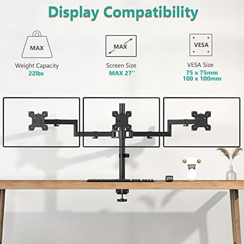 A comprehensive comparison of the 72 best Triple Screen monitor arm products. Top brands include VIVO, WALI and MOUNTUP. Based on our analysis, the highly-rated option is WALI Triple Monitor Mount for 13-27 inch Computer Screens, 3.... These rankings are based on real-world performance, user reviews, and value for money.