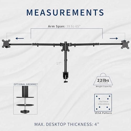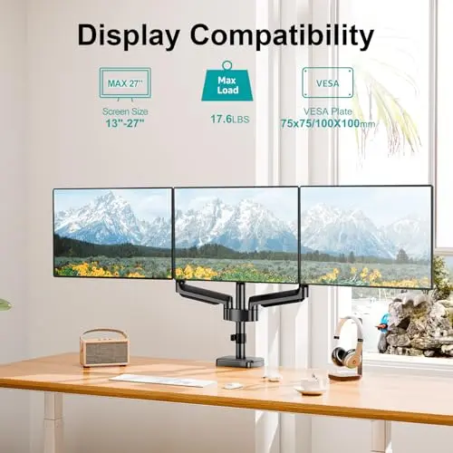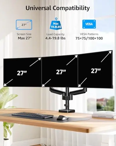 Compared with dual monitor arm pages, triple-screen results place a higher premium on bar width, weight distribution, and desk footprint. Compared with quad monitor arm pages, this route is more manageable for desks that need a broad view without moving into the complexity of four displays.