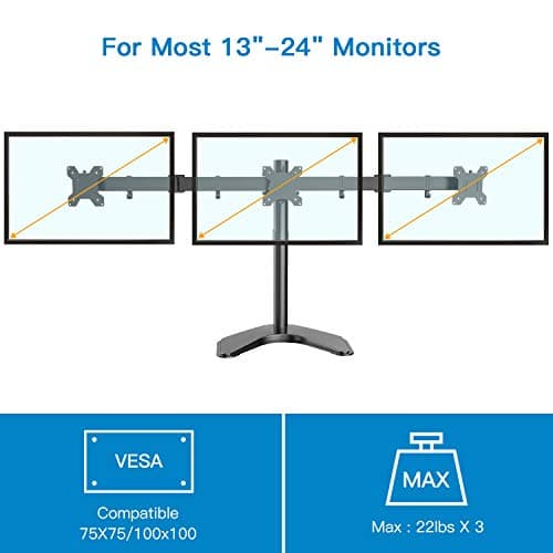 WALI Triple Monitor Mount for 13-27 inch Computer Screens, 3 Monitor Desk Mount, Holds up to 22 lbs, Adjustable Triple Monitors Stand with Swivel Tilt Rotation, 75x75/100x100mm (M003), Black