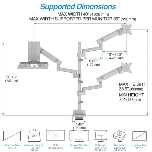 - Up to 19.8 lbs monitor arm(77)