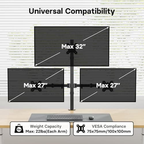 Start by deciding whether the layout is truly triple-only or whether a stacked or expandable design would work better. If you only need two screens, compare with dual monitor arm options. If you are planning four screens, see quad monitor arm results. For vertical productivity layouts, also review vertical-stack monitor arm picks. For the full category, use monitor arm.