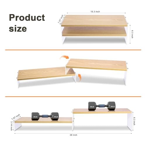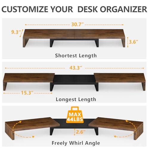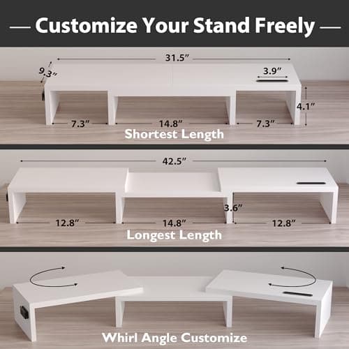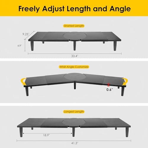 Dual-Monitor Stand for Desk - Large Adjustable Length and Angle Riser for 2 Monitors, Double Computer Desktop Organizer, Shelf for TV, Laptop, Printer