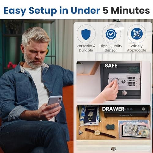 Instant Kini Safe Alert Wi-Fi Motion Sensor Alarm - Real-time SMS, Email, IFTTT - Great for Gun Safes, Cabinets, Office - Easy Install, No Subscription, Long Lasting Rechargeable Battery, USA-Made