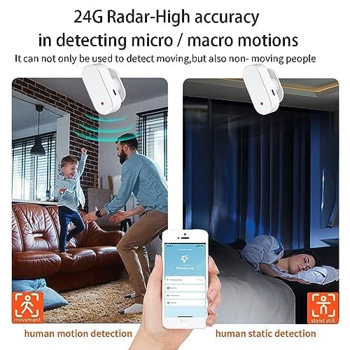 Linptech WiFi Human Presence Sensor,Smart Motion Sensor with 24G mmWave Radar,Occupancy Sensor for Home Security and Automation,Compatible with Alexa/Smart Life/Tuya Smart,No Hub Required(White)