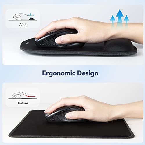 YIWEI Ergonomic Mouse Pad with Wrist Support - Gel Memory Foam Mouse Mat for Computer Keyboard & Laptop - Non-Slip Base, Pain Relief for Home Office & Gaming - Black