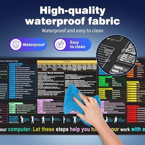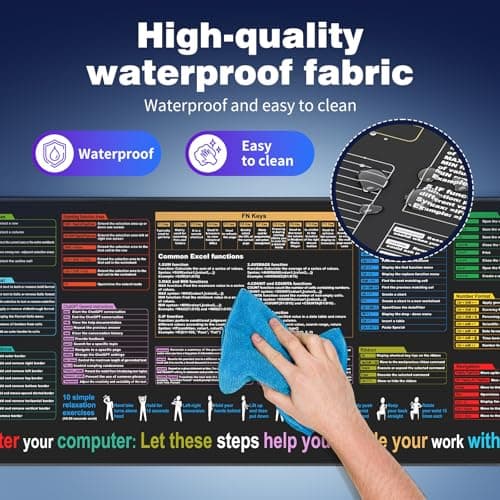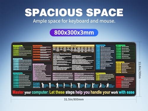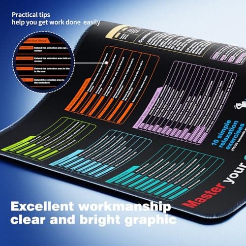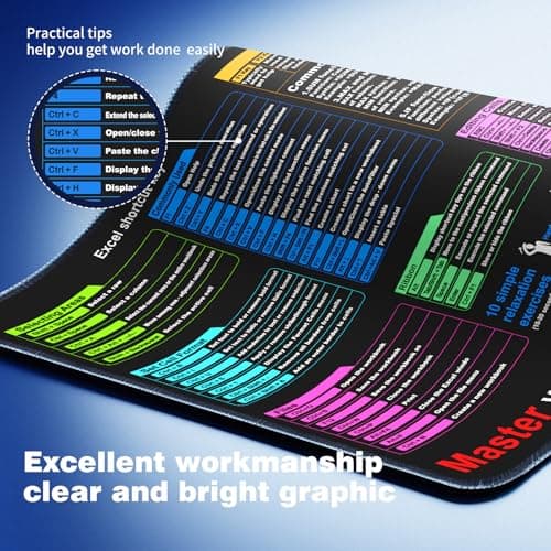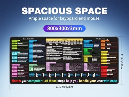 Excel Cheat Sheet Desk pad—Contains 12 Types of Common Skills in Excel and Word|Large XL Size(31.5 * 11.8 inch)|Desk mat for Keyboard and Mouse|Work、Study、Gaming Mouse pad|Waterproof、Anti-Slip
