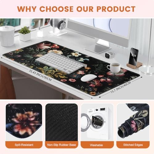 HAOCOO ​​Vintage Aesthetic​​ Floral Plant Desk Mat, Desk Matt for Desktop, Large Mouse Pad Drom Decor, Keyboard Mats for Desk, Computer Desk Cover Mat for Office, Home and School Accessories
