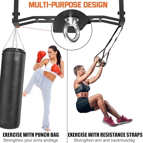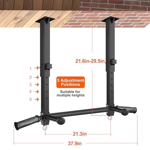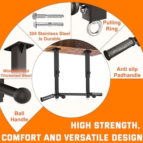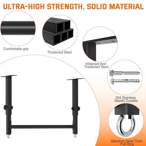Ceiling Mount Pull Up Bar for Garage/Basement/Rafter - Heavy Duty 800LBS Adjustable Height Multi-Grip Chin Up Bar,Ceiling Joist/Beam Mounted Pull-Up Bar with Ball Finger & Round Anchors