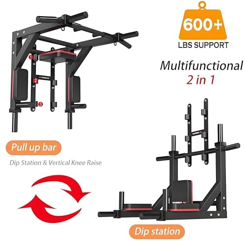 HAKENO Multifunctional Wall Mounted Pull Up Bar Chin Up bar,Dip Station for Indoor Home Gym Workout,Power Tower Set Gym Equipment 800LBS