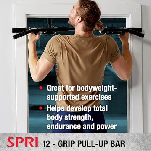 SPRI Pull Up Bar - 8-Grip and 12-Grip Door Frame Mounting Pull-Up Bar for Versatile Workouts - Rugged Steel Frame with Foam Handles - Supports 300 Pounds - Fits Door Frames Up to 32 in. Wide – Black