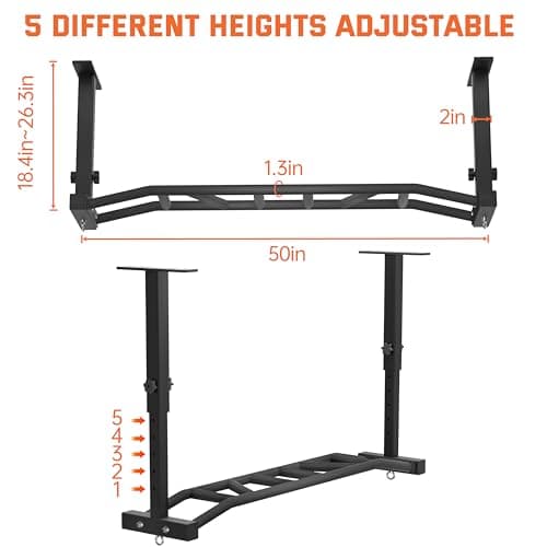 HWOOUSA 48" Ceiling Mount Pull Up Bar, Heavy Duty Multi-Grip Rafter Chin Up Bar for Garage/Basement/Backyard Ceiling Beam, Adjustable Height&Supports to 650 Lbs