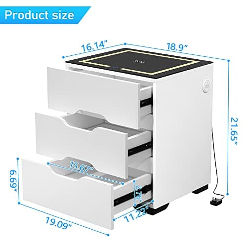 HNEBC Auto LED Nightstand with Wireless Charging Station & USB Ports,High Gloss Bedside Tables with 2 Drawers,Floating Nightstand with 3 Color & Adjustable Brightness for Bedroom,Black