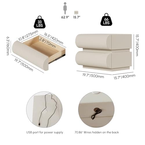 Two-drawer nightstands make sense when you want a more organized bedside setup without jumping to a much larger dresser-like piece. This page is the clearest comparison against single-drawer and open-shelf alternatives.
