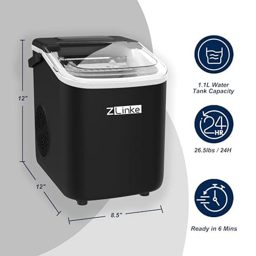 COWSAR Ice Maker Countertop, Portable Ice Machine with Self-Cleaning, 26.5lbs/24Hrs, 9 Bullet Ice Cubes in 6 Mins, Ice Basket and Scoop, Ideal for Home, Kitchen, Bar, Camping