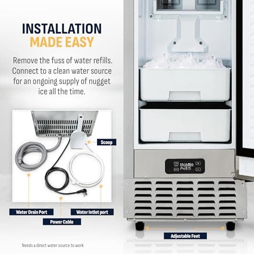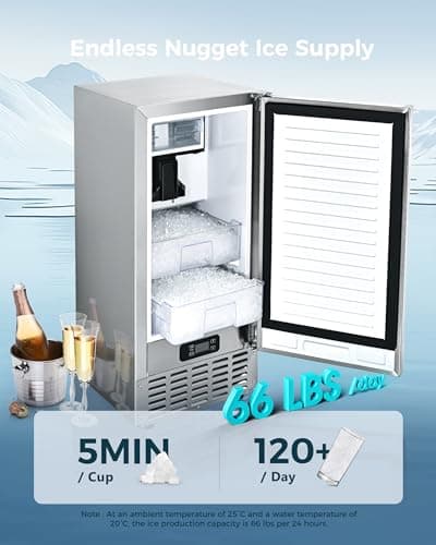 Newair 15" Undercounter Nugget Ice Maker, Pebble Ice Maker Producing 66 lbs. Daily, Built-in or Freestanding in Stainless Steel, Sonic Ice Makers for Home, Bar, Restaurant