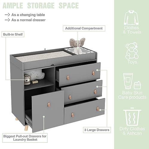 Compared with the broader nursery dresser parent, this branch keeps the shortlist centered on one tradeoff instead of the full mix of changing-top styles, drawer counts, and storage add-ons. Use it when diaper-change convenience matters more than browsing the full nursery dresser category is already the first thing you want to sort by.