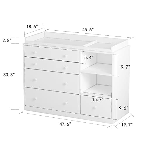 DAWNSPACES Baby Changing Table Nursery Dresser with Drawers, 45 Inch Hidden Trash Storage,Changing Station,Storage Dresser Chest for Infant, White