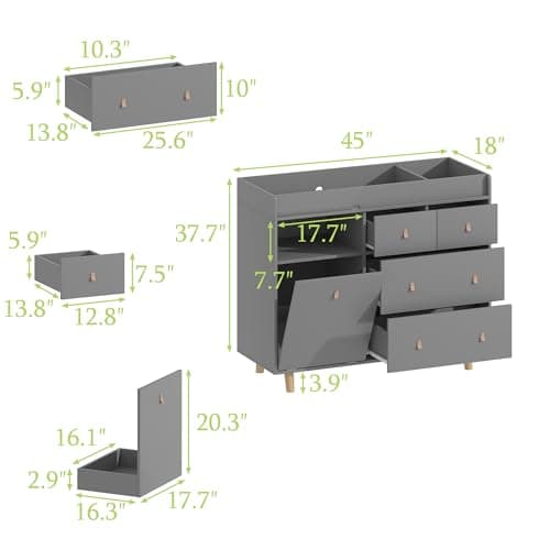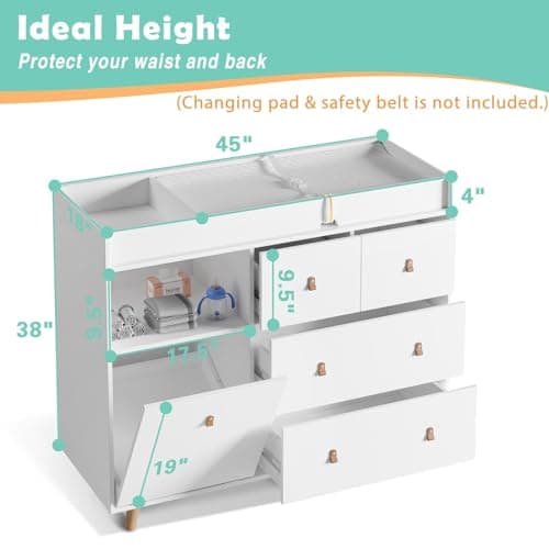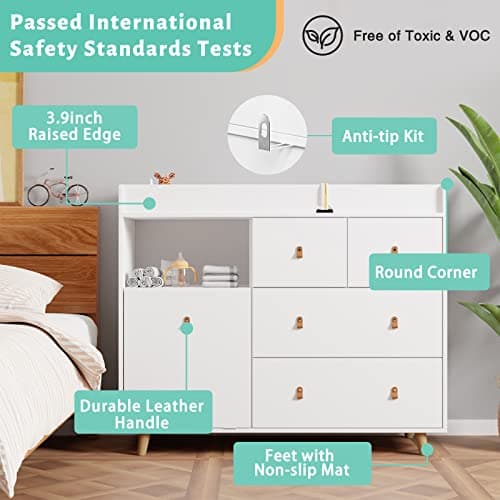 PAKASEPT Changing Table with Drawers, Changing Table Dresser with 5 Drawer & Cabinet