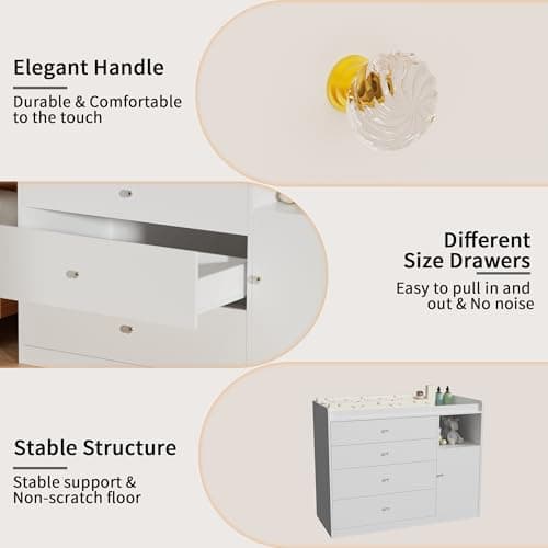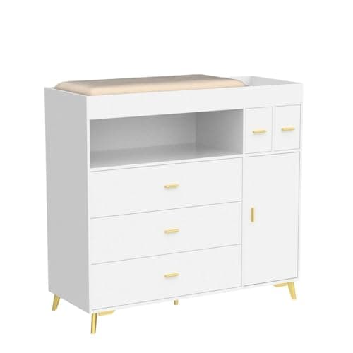 QUNTTINA Nursery Dresser Changing Table Dresser with Changing Table Top Baby Diaper Changing Station with 5 Drawers for Infants Chest Storage Changing Station Nursery Organizer,White