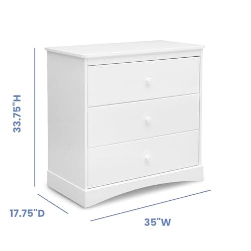 Delta Children Sutton 3 Drawer Dresser with Changing Top and Interlocking Drawers - Greenguard Gold Certified, Bianca White