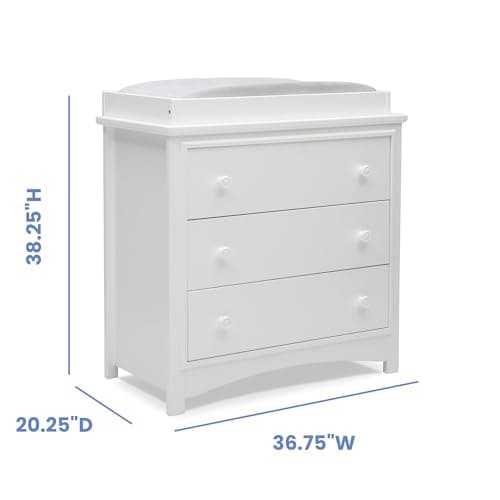 Delta Children Sutton 3 Drawer Dresser with Changing Top, White