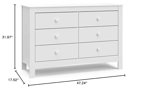 Storkcraft Moss 6 Drawer Dresser (White) – GREENGUARD Gold Certified Nursery Dresser, Safety-Focused Interlocking Drawer System, Chest of Drawers for Bedroom, Wood Craftsmanship
