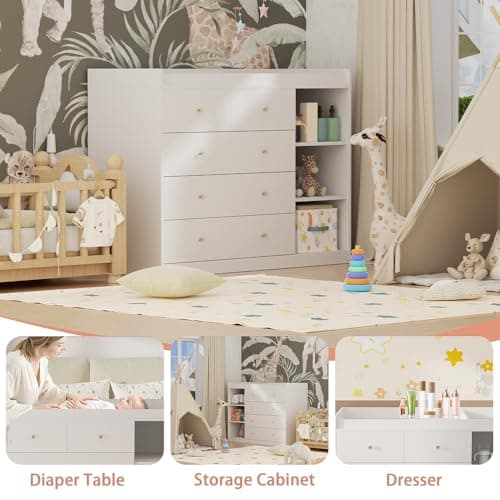 QUNTTINA Nursery Dresser Changing Table 4 Drawers Dressers with Changing Table Top Baby Dresser Chest with Open Storage Changing Station with LED Light Diaper Changing Station Nursery Organizer,Beige