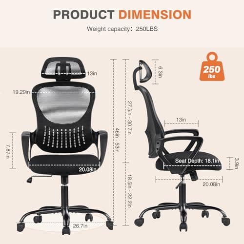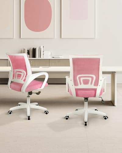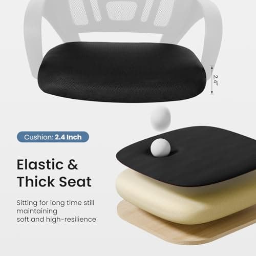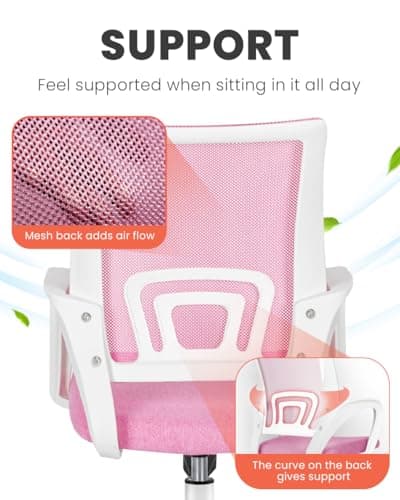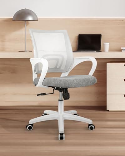 BestOffice | Ergonomic Office Chair | Mid-Back Swivel Desk Chair | Breathable Backrest & Lumbar Support | Adjustable Height | Sponge Seat | Rolling Wheels | Black | for Adults & Women
