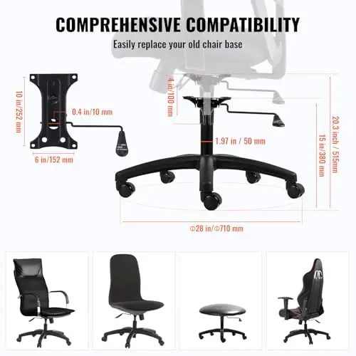 VEVOR Office Chair Base Replacement, 28", 2500 lbs Static Load, Heavy Duty Universal Computer Desk Chair Stool Part With 5 Casters, Gas Cylinder & Seat Plate, Black