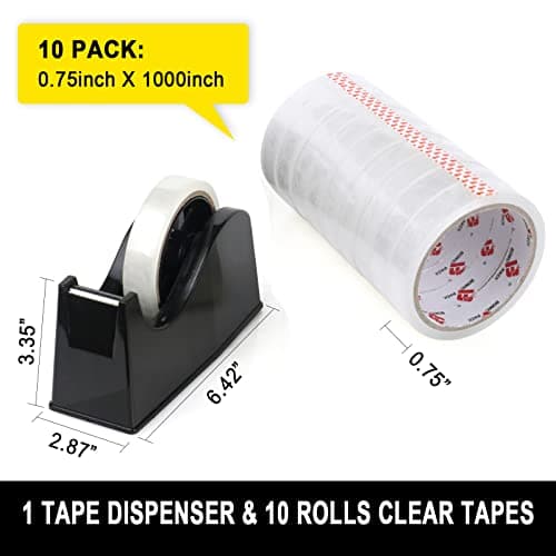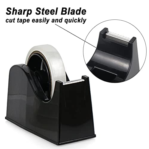 BOMEI PACK Tape Dispensers Desk, 1 Pack Black with 12Rolls Transparent Tape, 1 Inch Core, for Gift Wrapping, School, Office and Home
