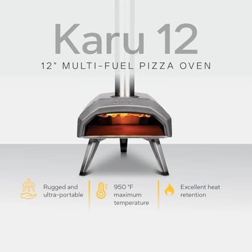 Ooni Karu 12 Multi-Fuel Outdoor Pizza Oven – Reaches 950°F and Cooks 12 Inch Pizzas and More in 60 Seconds - Portable Wood and Gas Grill with Pizza Stone, Dual Fuel Ooni Pizza Oven