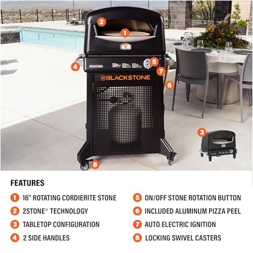 Blackstone Propane Pizza Oven with Stand, 2-Stone Tech with 15-in Rotating Cordierite Stone and Detachable Base