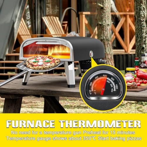 Outdoor Pizza Oven aidpiza 12" Wood Pellet Pizza Ovens With Rotatable Round Pizza Stone Portable Wood Fired with Built-in Thermometer Pizza Stove for Outside Backyard Camping Picnics