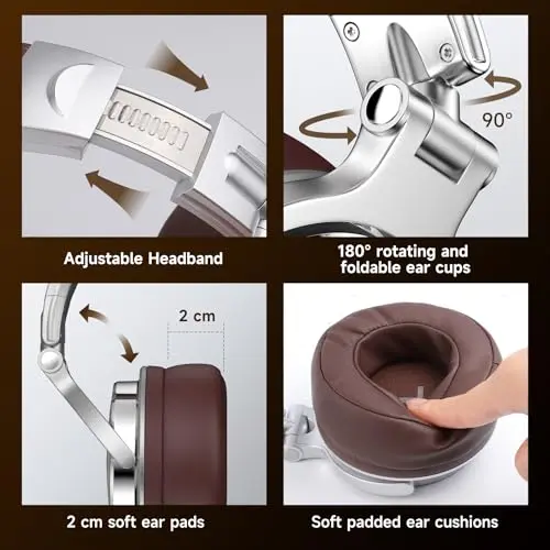 OneOdio Pro-30 Over Ear Headphone, Wired Premium Stereo Sound Headsets with 50mm Driver, Foldable Comfortable Headphones with Protein Earmuffs and Shareport for Recording Monitoring Podcast PC